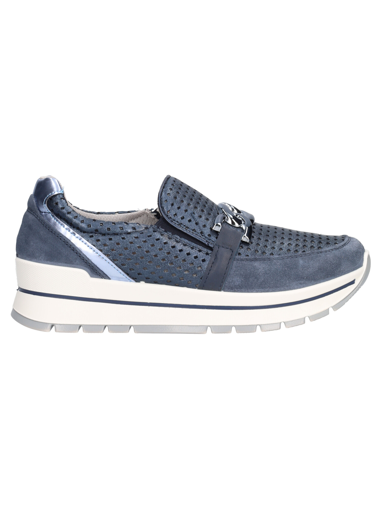 Mocassino sportivo Igi&Co da donna in pelle blu con dettagli in pelle scamosciata, fodera in tessuto e sottopiede estraibile in pelle con memory foam fondo in gomma.