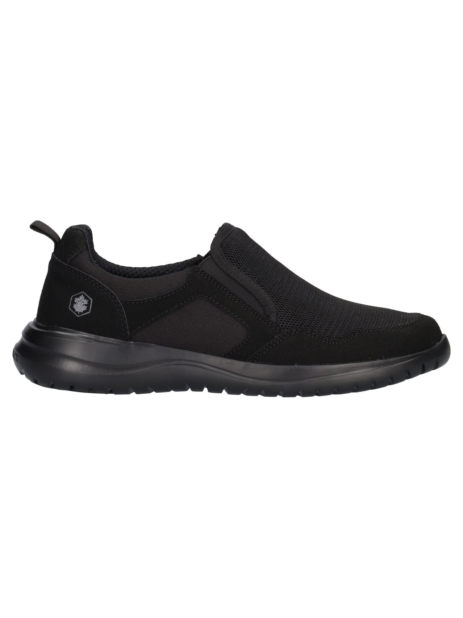 Scarpa slip on Lumberjack Lee da uomo in tessuto ed ecopelle nera con fodera e sottopiede estraibile in tessuto e fondo in gomma.