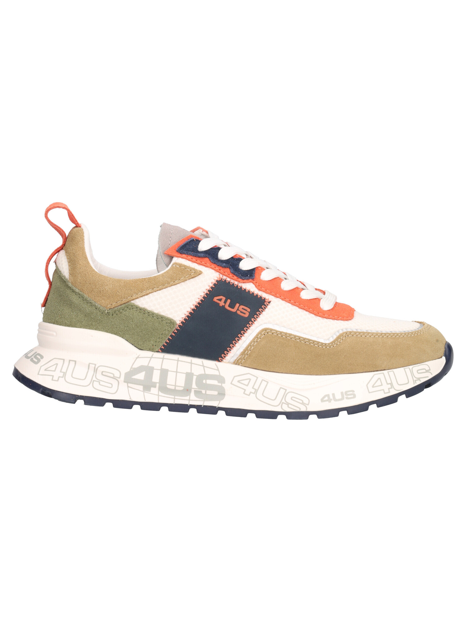 Sneaker 4US by Paciotti da uomo in pelle scamosciata verde con dettagli colorati ed inserti in tessuto fodera e sottopiede estraibile in pelle e tessuto e fondo in gomma.