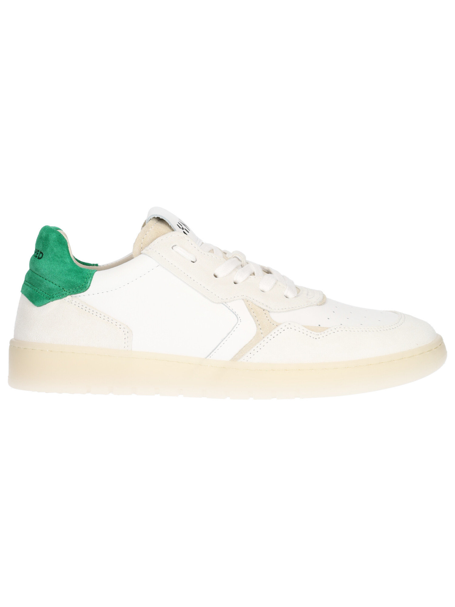 Sneaker Hundred da uomo in pelle bianca con inserti in pelle scamosciata multicolor e colletto imbottito. Sottopiede estraibile in pelle e fondo in gomma antiscivolo.