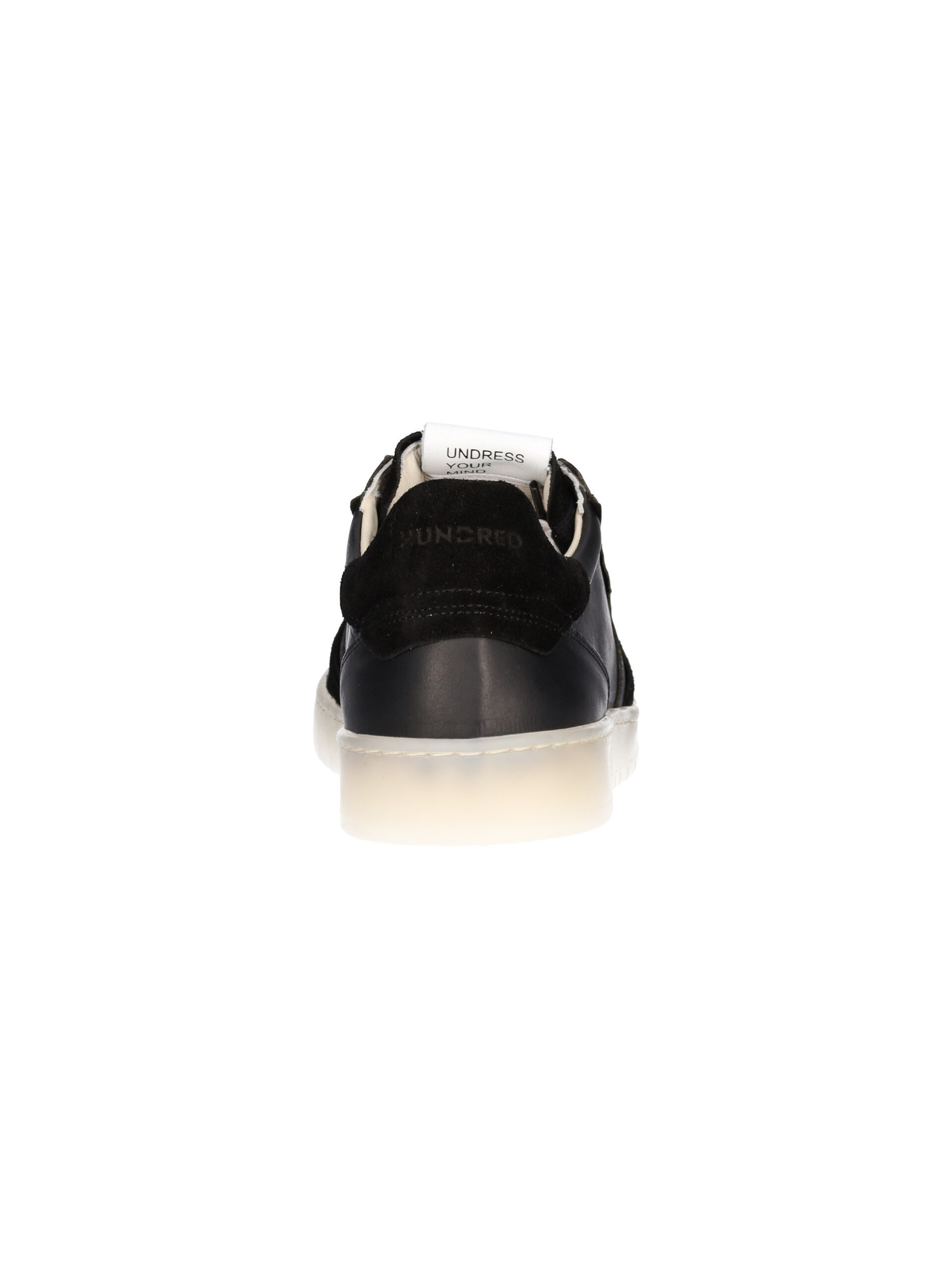 Sneaker Hundred da uomo in pelle nera con inserti in pelle scamosciata e colletto imbottito. Sottopiede estraibile in pelle e fondo in gomma antiscivolo.