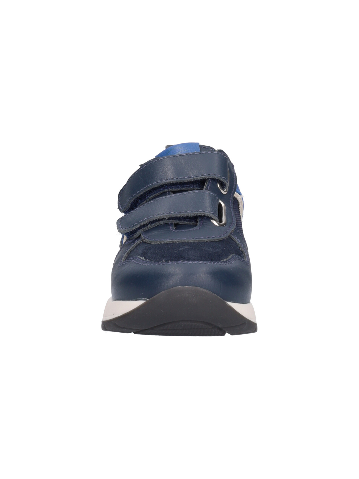 Sneaker Nero Giardini da bambino in pelle blu con dettagli in tessuto e doppio stretch regolabile. Fodera e sottopiede sempre in pelle e fondo in gomma antiscivolo.