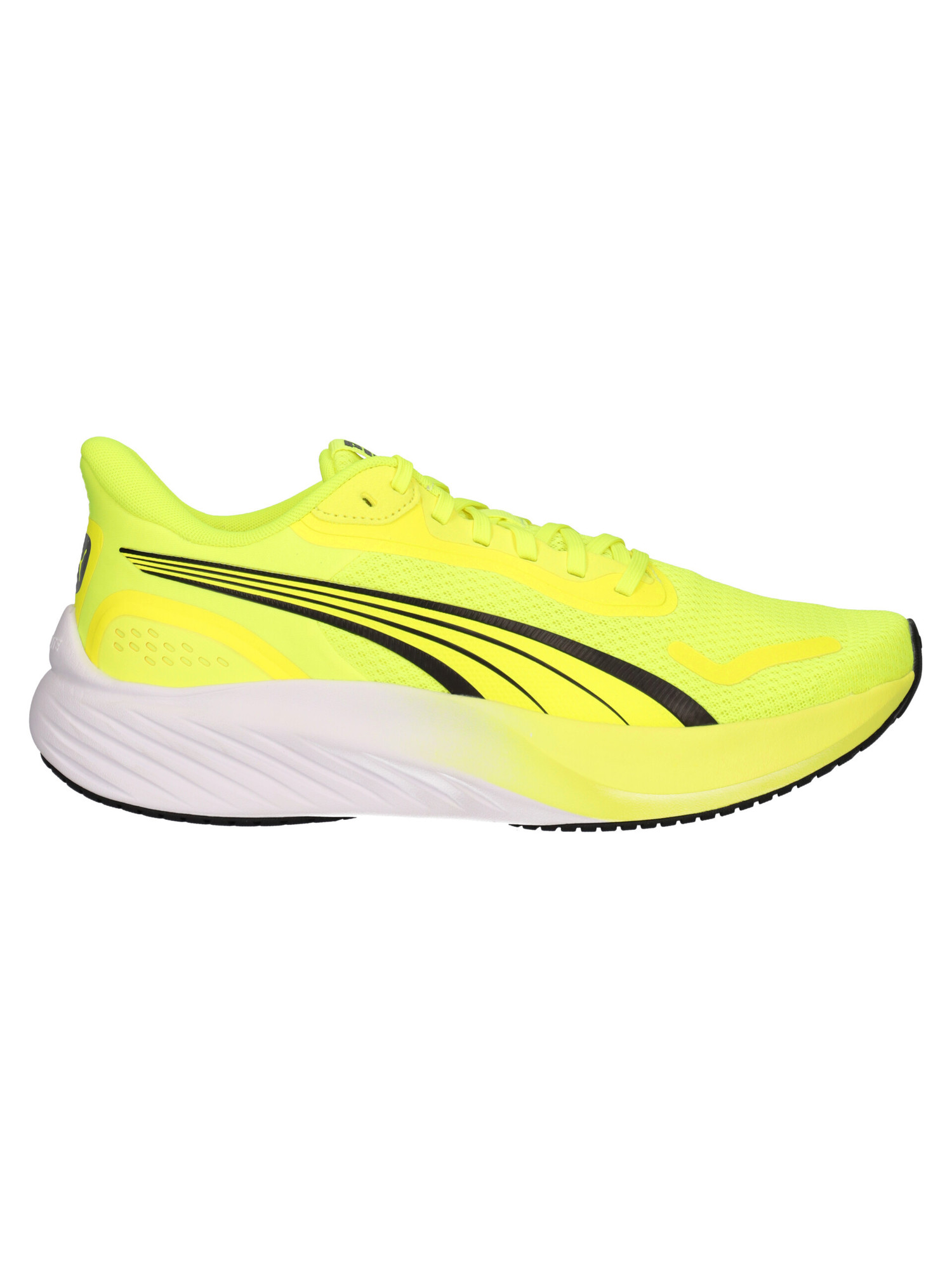 Sneaker Puma Pounce da uomo in tessuto giallo fluo con dettagli in ecopelle, fodera e sottopiede estraibile sempre in tessuto e fondo in gomma.
