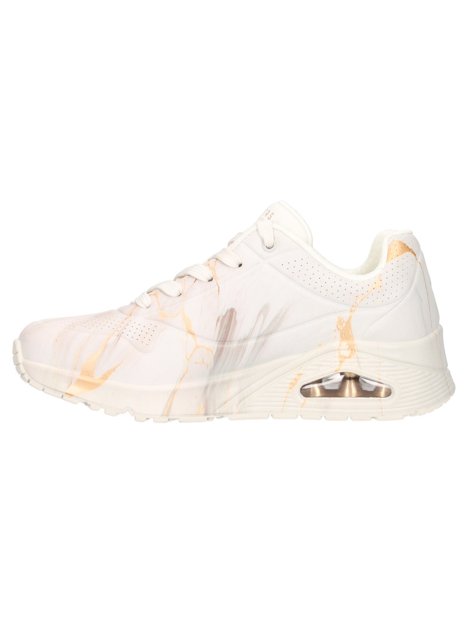Sneaker Skechers Air-Cooled da donna in ecopelle avorio effetto marmorizzato e colletto imbottito morbido sottopiede con Memory Foam e fondo in gomma antiscivolo con all'interno aria che ammortizza ogni passo.