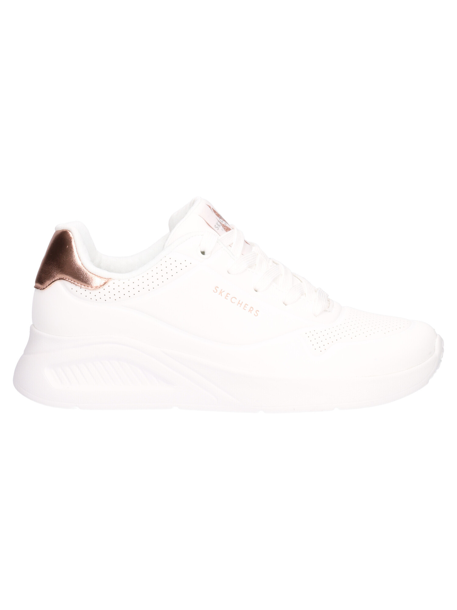 Sneaker Skechers Uno da donna in ecopelle bianca con fodera e sottopiede in tessuto e fondo in gomma.