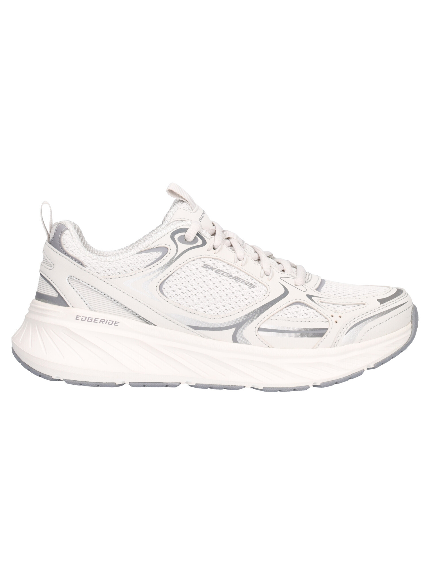 Sneaker Skechers Vegan da donna in ecopelle grigia con dettagli in tessuto, fodera e sottopiede sempre in tessuto e fondo in gomma.