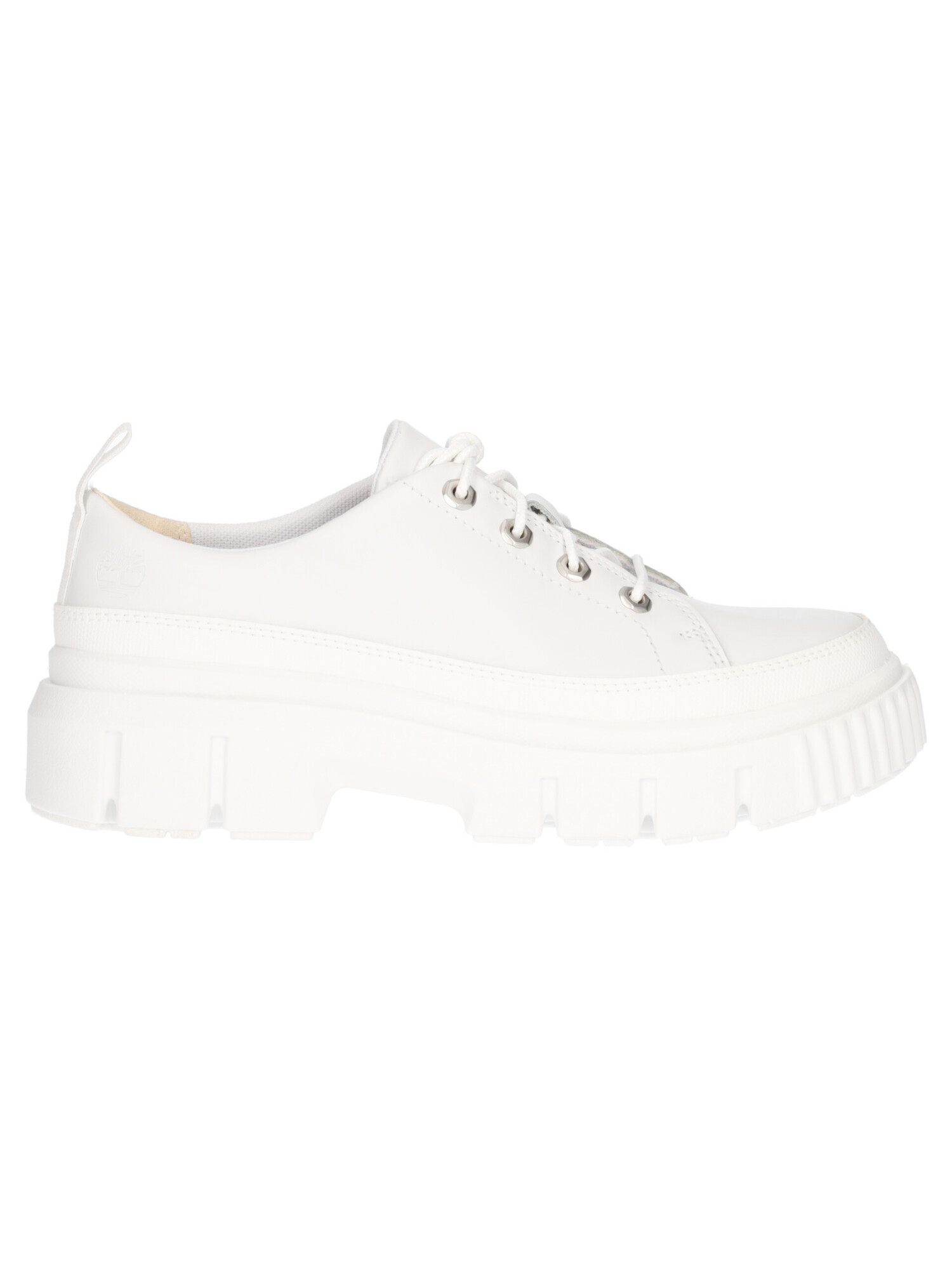 Sneaker Timberland Greyfield da donna in pelle bianca con fodera e sottopiede estraibile in tessuto e fondo in gomma antiscivolo.