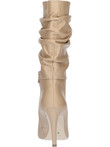 Stivale a punta Nero Giardini da donna beige interamente in pelle arricciata, zip laterale e fondo in gomma con tacco di 9,5cm.