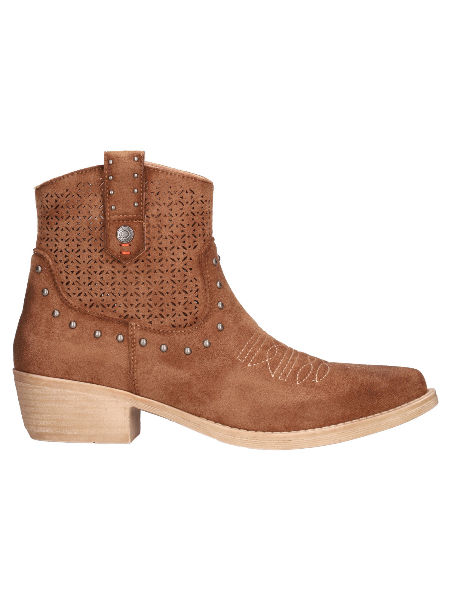 Texano corto Refresh Vegan da donna in similcamoscio traforato cuoio con fodera e sottopiede in ecopelle, fondo in gomma e tacco di 4,5cm.