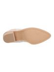 Stivaletto Refresh Vegan da donna in ecopelle laminata traforata oro con zip laterale, fodera e sottopiede in ecopelle e tessuto fondo in gomma con tacco di 6cm.