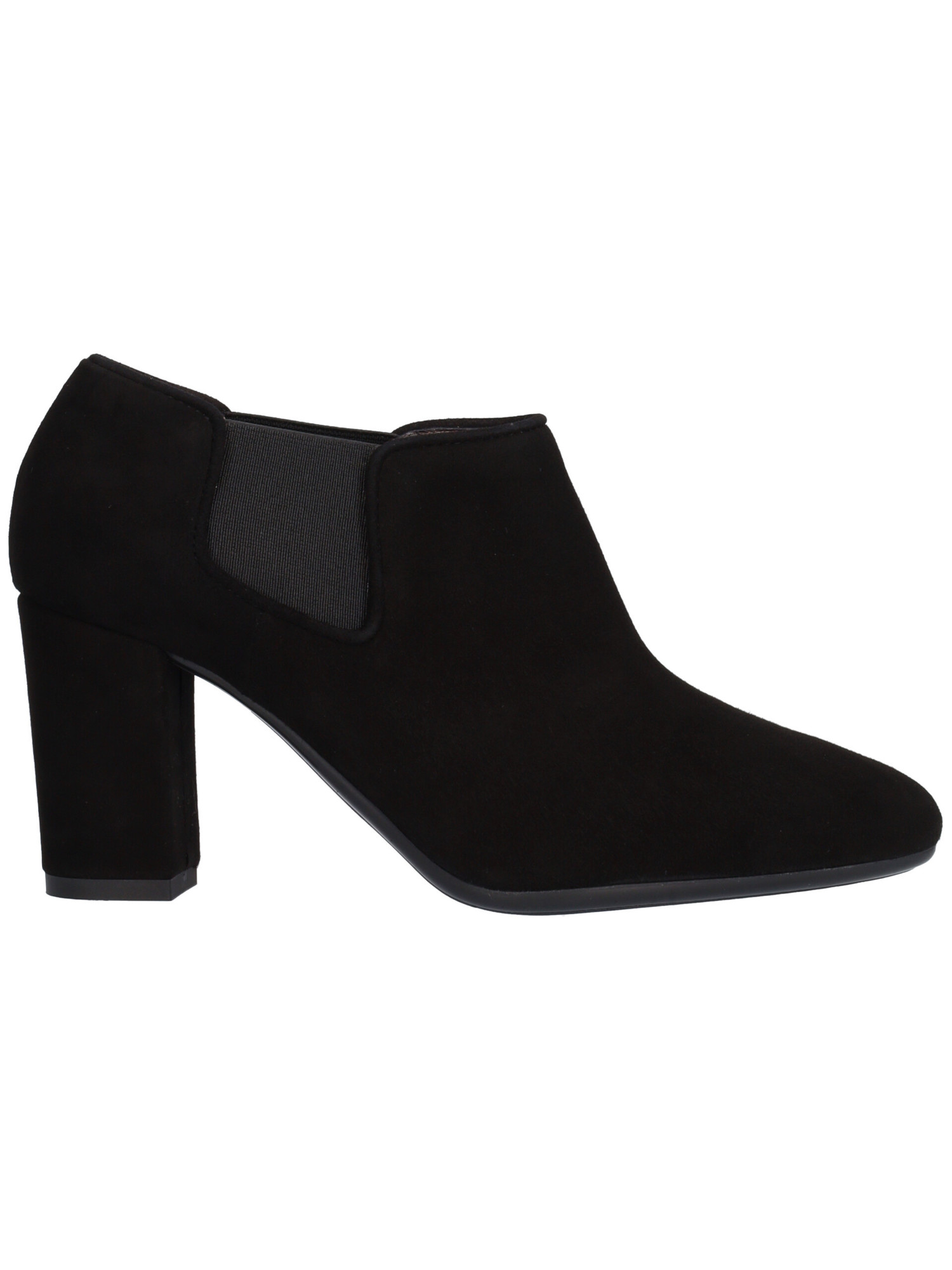 Stivaletto a punta Confort da donna in camoscio nero con elastici laterali, fodera e sottopiede in pelle fondo in gomma con tacco di 7,5cm.