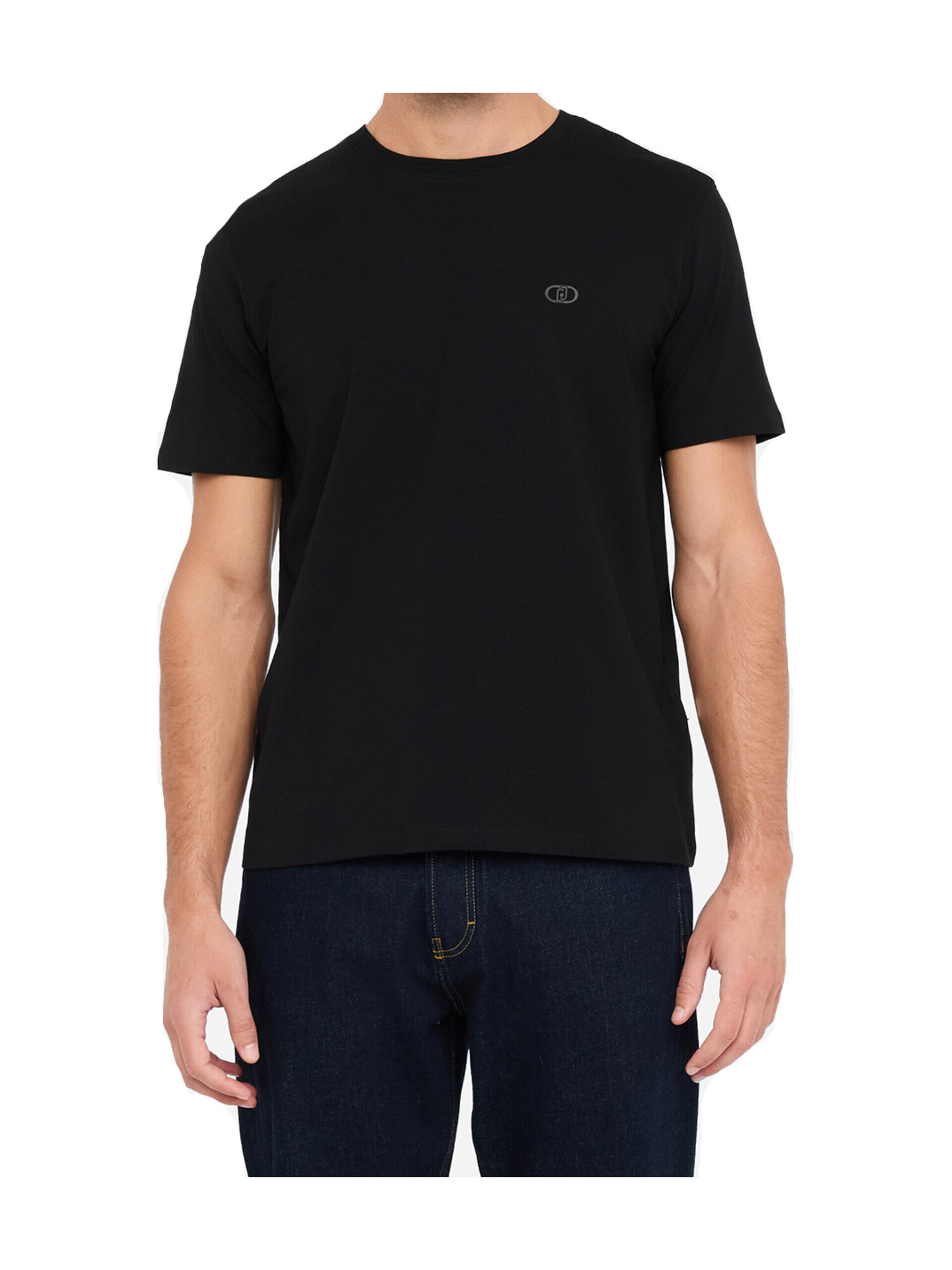T-shirt basica Liu Jo da uomo in cotone nero con piccolo logo tono su tono, taglio girocollo e maniche corte.