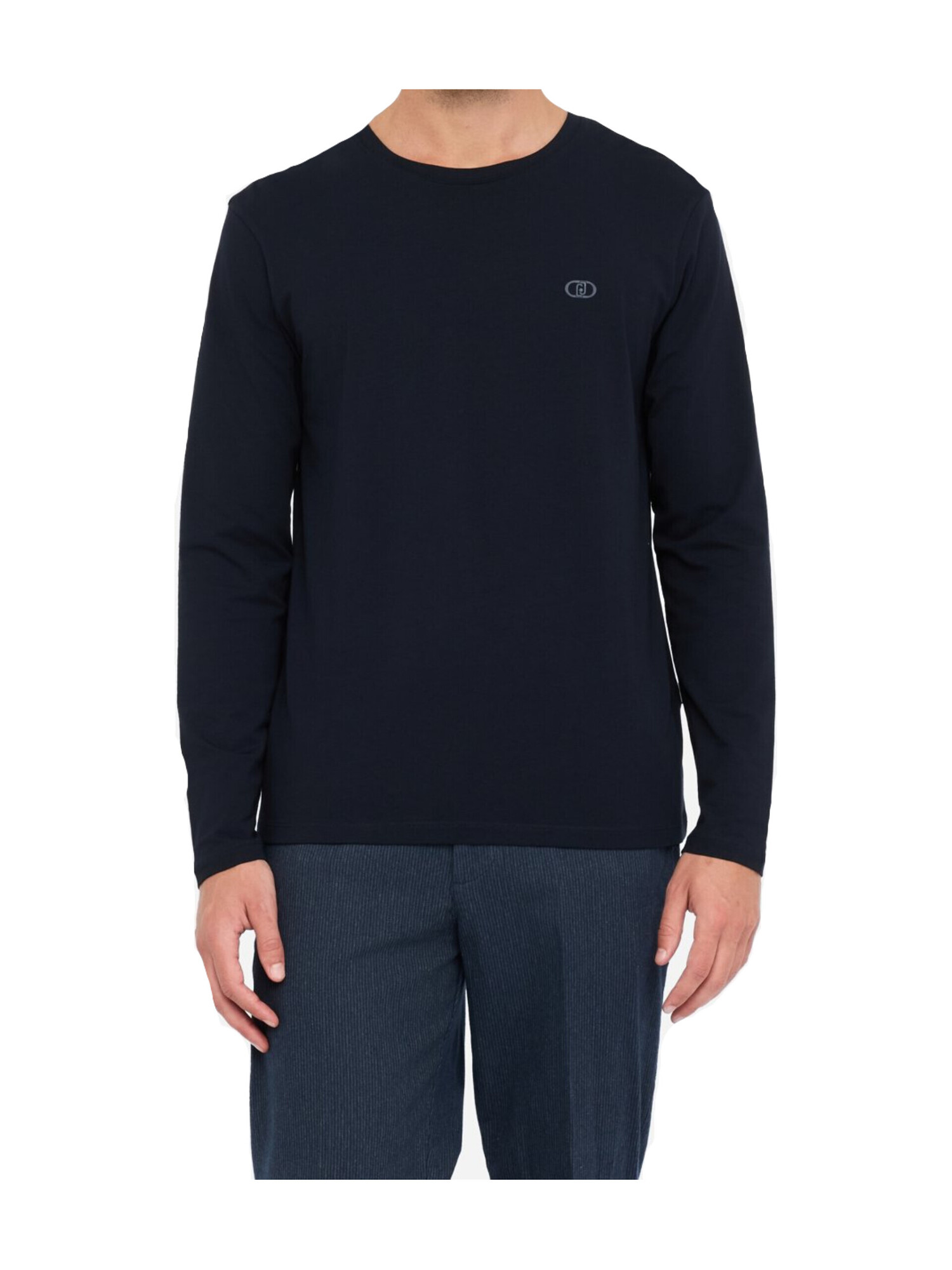 T-shirt a maniche lunghe Liu Jo da uomo in cotone blu con logo LJ sul petto e taglio girocollo.