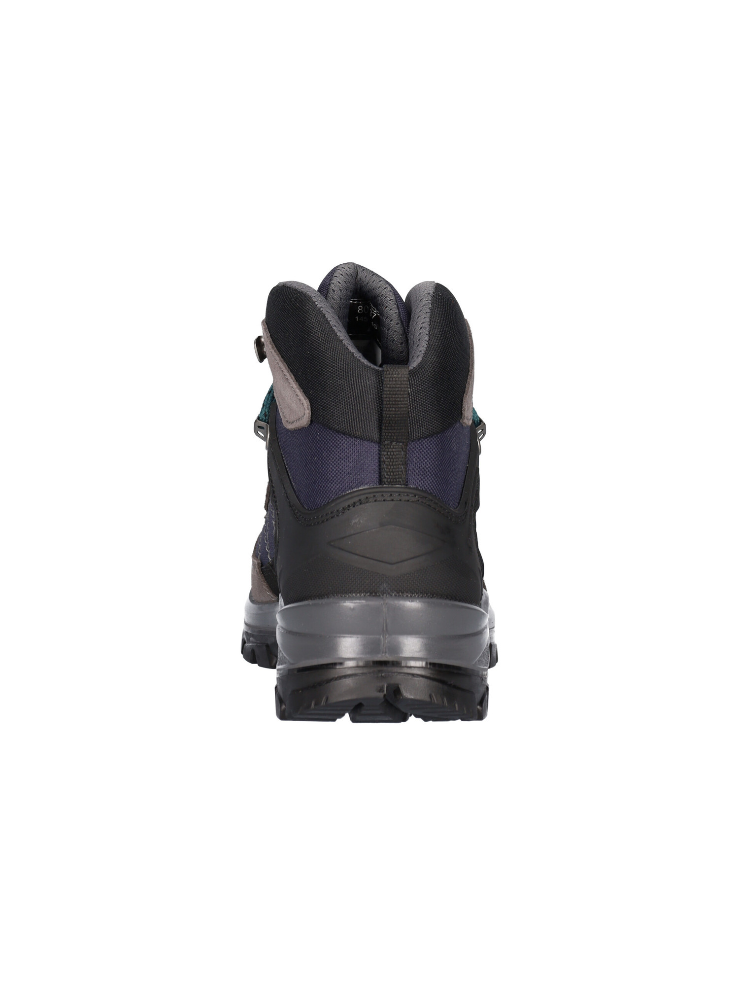 Trekking alto Grisport unisex in pelle scamosciata grigia con inserti in tessuto blu, allacciatura a contrasto. Tomaia foderata da una membrana prottetiva Gritex per una maggior protezione da acqua, freddo e vento. Più resistenza nella zona tallone grazie al support system. Sottopiede estraibile in tessuto traspirante e fondo in gomma.