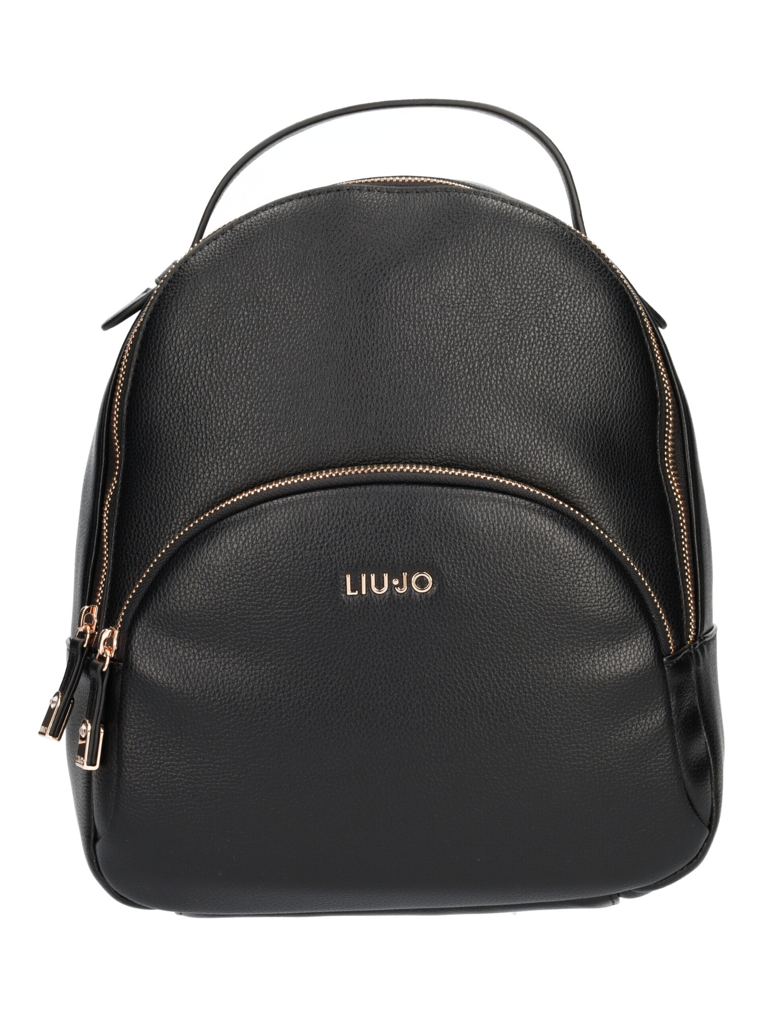 Zaino Liu Jo da donna in morbida ecopelle martellata nera con rifiniture dorate, zip centrale, taschini interni di servizio ed uno esterno.